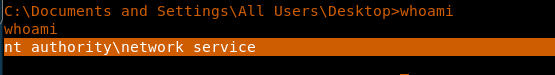 9. Looking into what roles/permissions we got in the reverse shell, it looks like we got the “nt authority/network service” account (which has very few privileges).