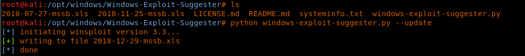 << python windows-exploit-suggester.py --update >>