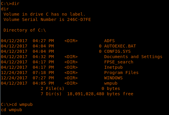 20. From above, directory “wmpub” is writable. Before we run the ftp command to fetch the binary, we need to host the binary from our attacking machine via ftp service.