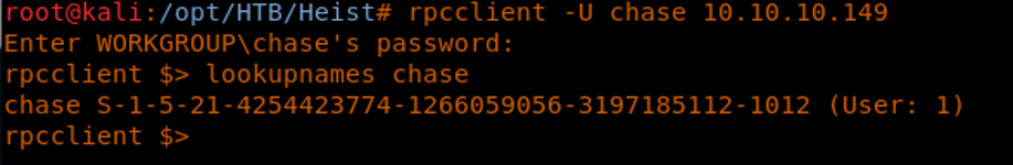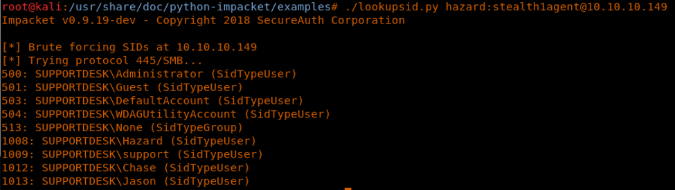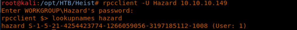 <<lookupsid.py hazard:<pwd>@10.10.10.149>>