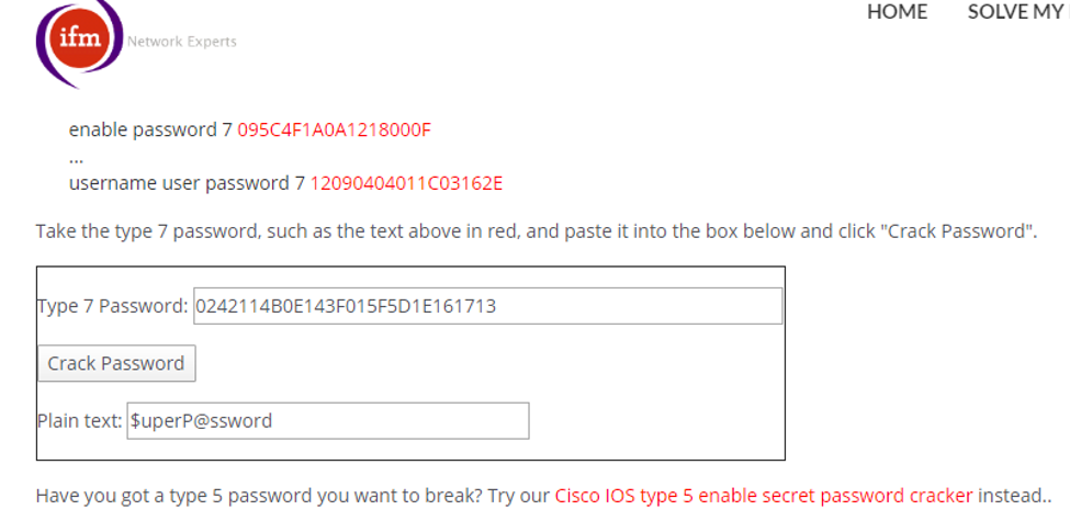 9. These Cisco Type 7s can be easily decrypted using an online utility, as shown below.