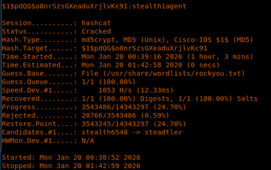 <<hashcat -a 0 -m 500 type5.txt /usr/share/wordlists/rockyou.txt --force>>