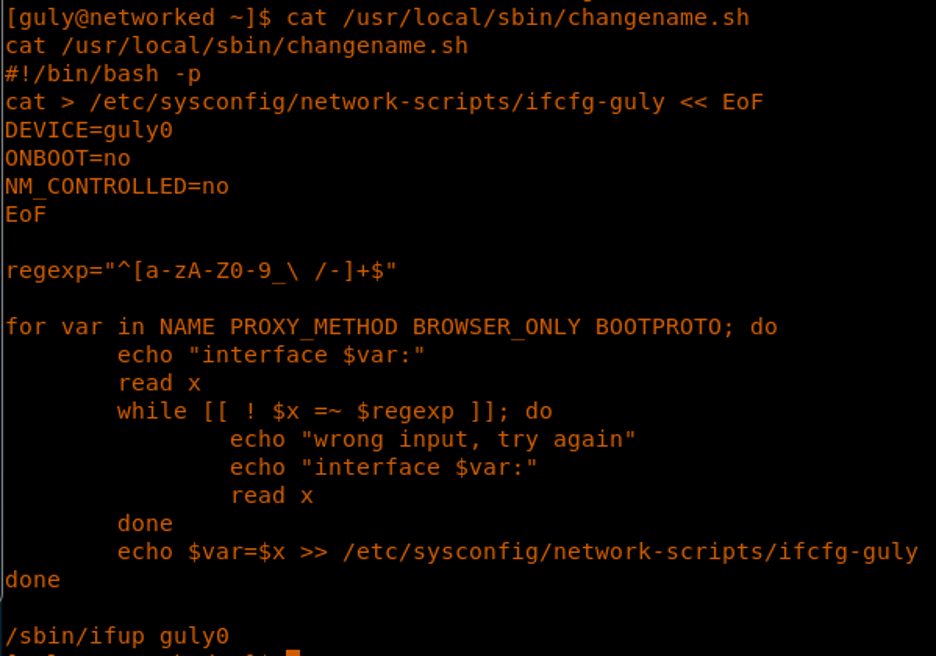 24. This script creates a network interface for guly and ask the user for options.