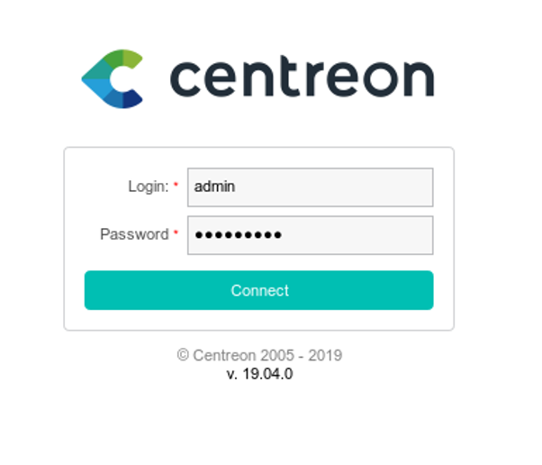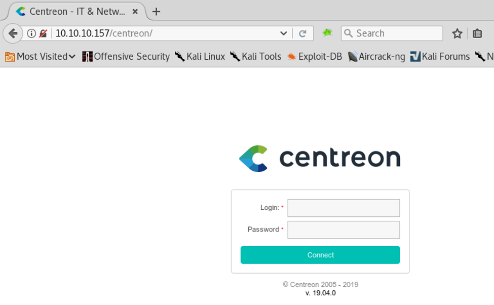 11. When we next visit the page, we got another login page for Centreon, as shown below. The good part is that it does show the version of the platform.
