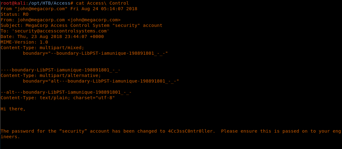 11. In the Backup folder, there is a backup.md file. Let’s print the strings in it. After analyzing it for some time, one string pops out, which is access4u@security.