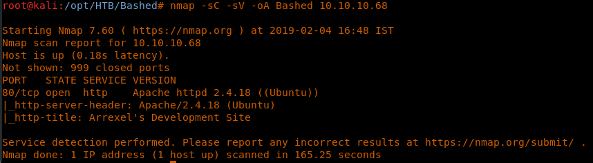 <<nmap -sC -sV -oA Bashed 10.10.10.68>>
