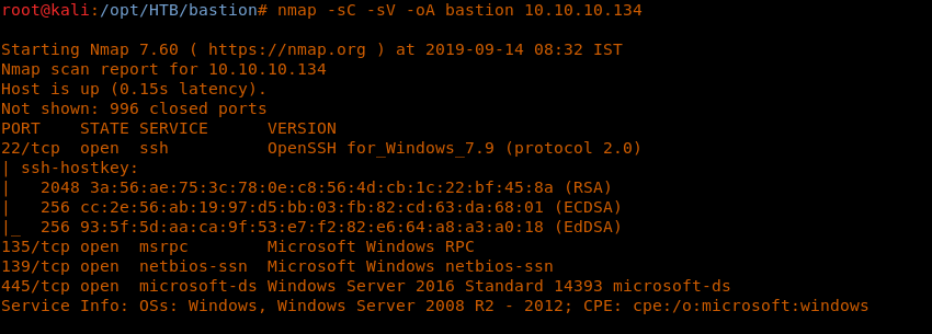 <<nmap -sC -sV -oA Bastion 10.10.10.134>>