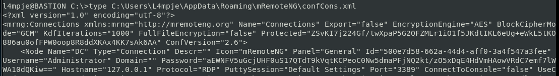 21. There is a git which can decrypt it: https://raw.githubusercontent.com/haseebT/mRemoteNG-Decrypt/master/mremoteng_decrypt.py
