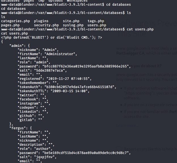 - I moved back a few directories and noticed that there is another version of BLUDIT there as well.