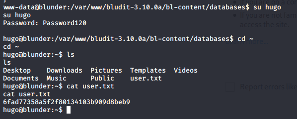 - Switching to user “hugo” and grabbing the user.txt flag.