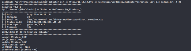 - The Blunder machine IP is 10.10.10.191.