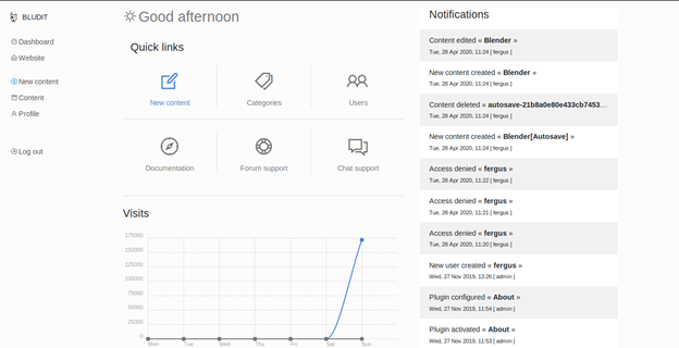 - Among the identified directories, admin looks promising. Enumerating the page, it looks like a login page for “BLUDIT”.