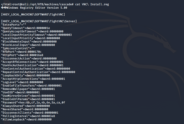 - VNS Install reg: Below, “VNS Install reg” is also recovered. Looking into its contents, there was a password in the VNC form in it. I used a utility to decode the VNS password at https://github.com/trinitronx/vncpasswd.py, where we can also see the decoded password.
