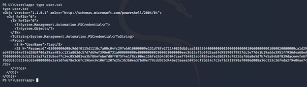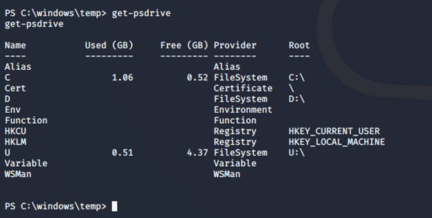 - Looking at the drives, we can see that there are multiple. Looking at U:, we see user.txt but it is encrypted.