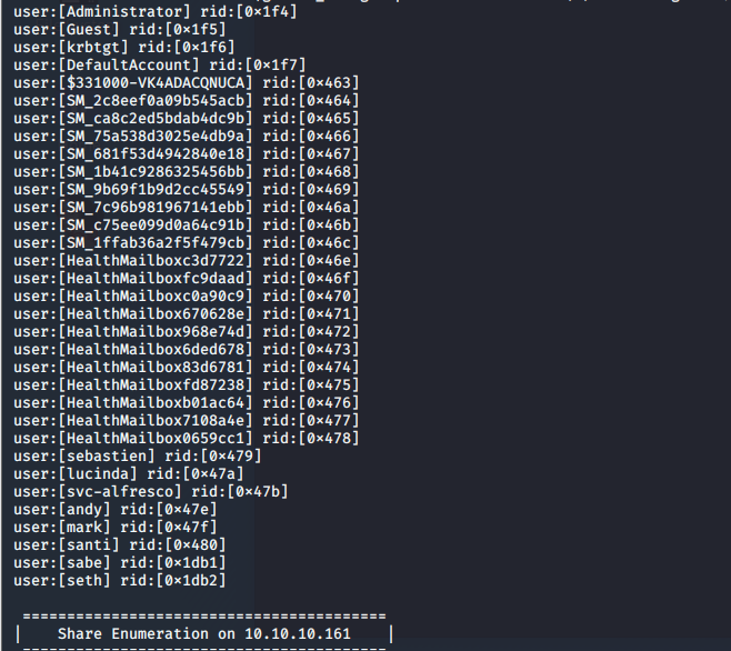 - Let’s start the enumeration using enum4linux. We get the below users: