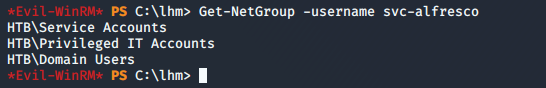 <<evil-winrm -u svc-alfresco -p -i 10.10.10.161>>