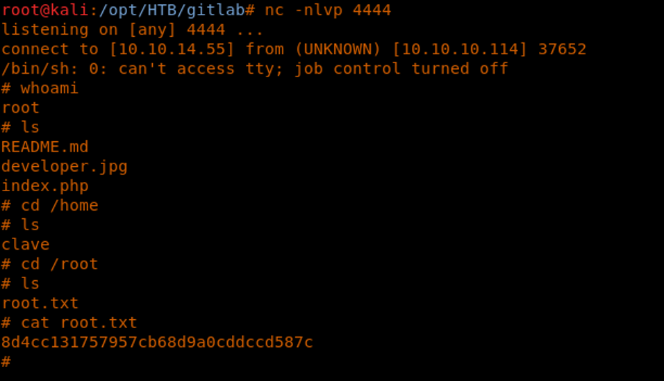 - Executing sudo git pull did execute it, giving the reverse shell back.