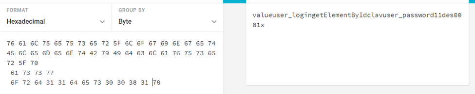 - Let’s look into the source code. Doing so, we found some hex-encoded strings.