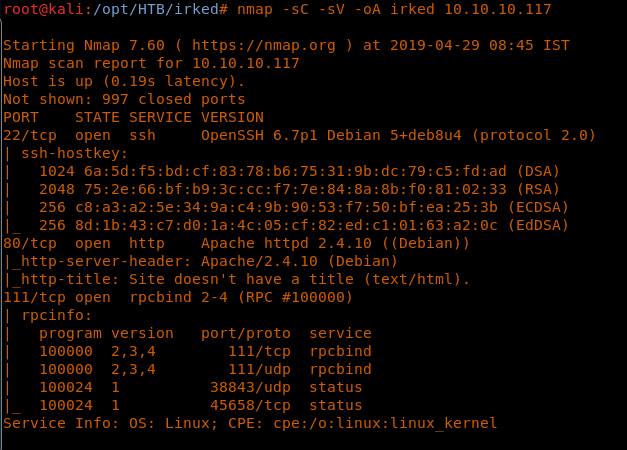 <<nmap -sC -sV -oA irked 10.10.10.117>>