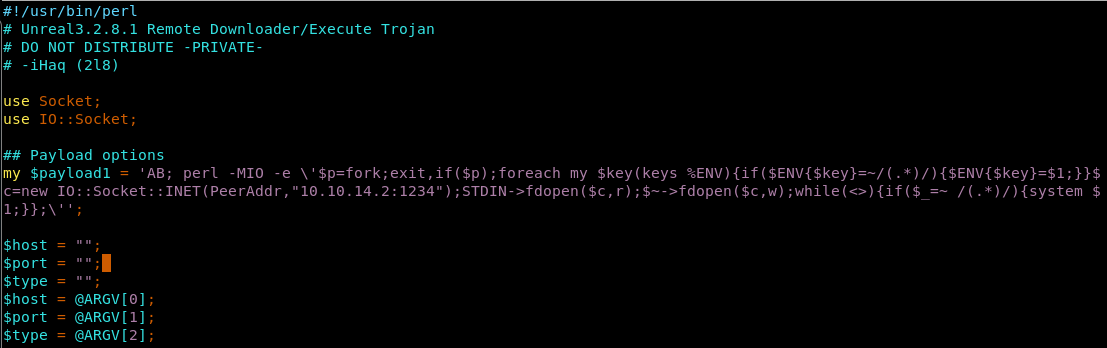 9. As discovered above, we found UnrealIRCd, and it looks like there is an exploit for this. We’ll download and modify it to suit our needs.
