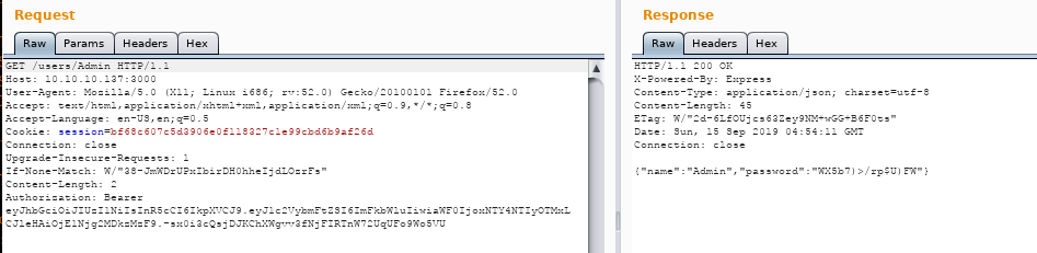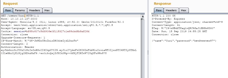 19. It looks like the auth was successful and in response, we got the token. Now let’s use this token and browse all the discovered directories under port 3000. Let’s start with /users.