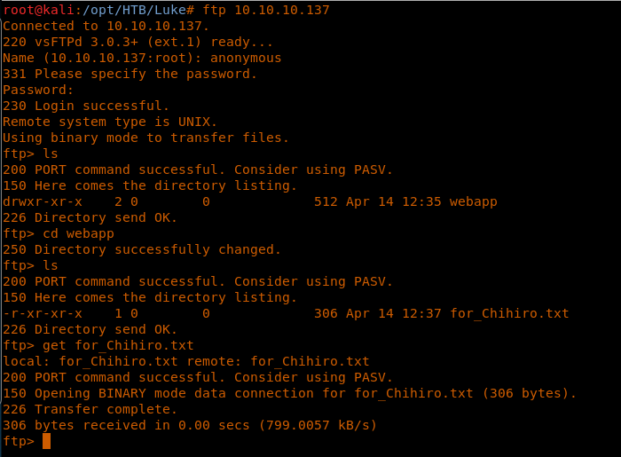 6. Let’s start with FTP. While enumerating, we can see that there is a .txt file. We collect that file on the local box.