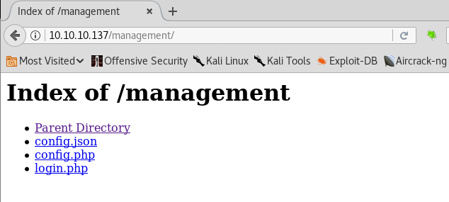 16. Enumerating config.php, it looks like we got a username and password. We tried that in the /management directory, but it did not work.