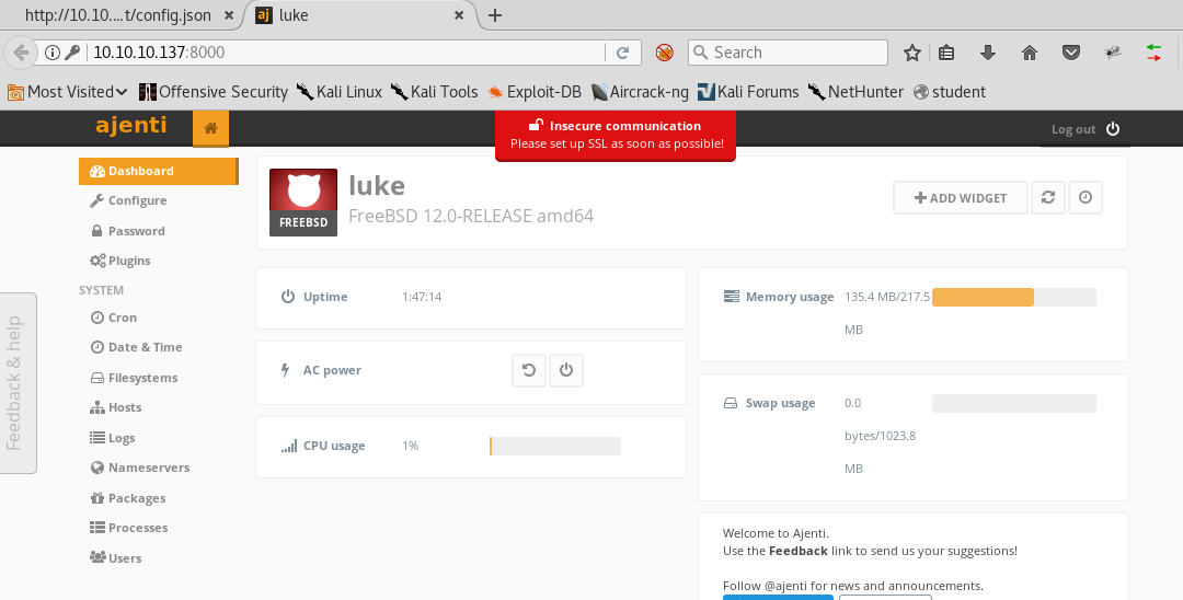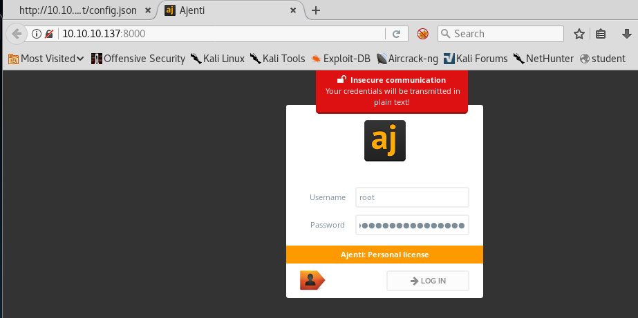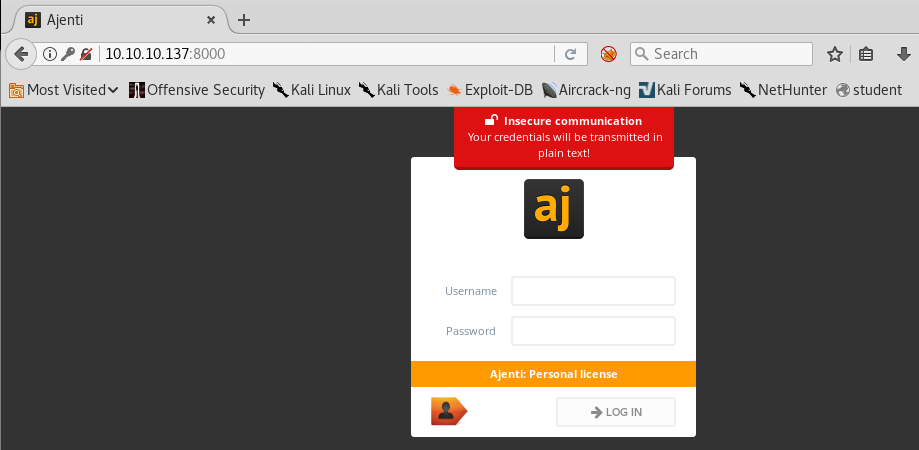 10. And finally, port 8000 hosts an Ajenti service. We tried the default username/password, but it did not work.