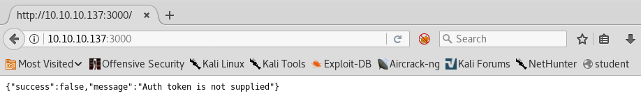 9. Moving to port 3000, we got a message about a missing Auth Token.