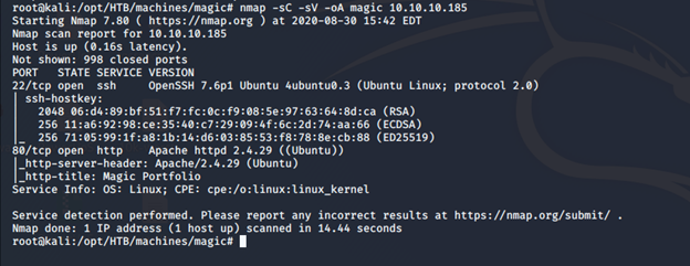 <<nmap -sC -sV -oA Magic 10.10.10.185>>