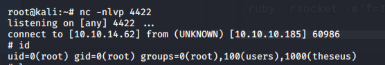 - Enumerating the system, we got a DB file named db.php5, which revealed a surname and password for user “theseus”. Trying to sudo that user with the password failed.