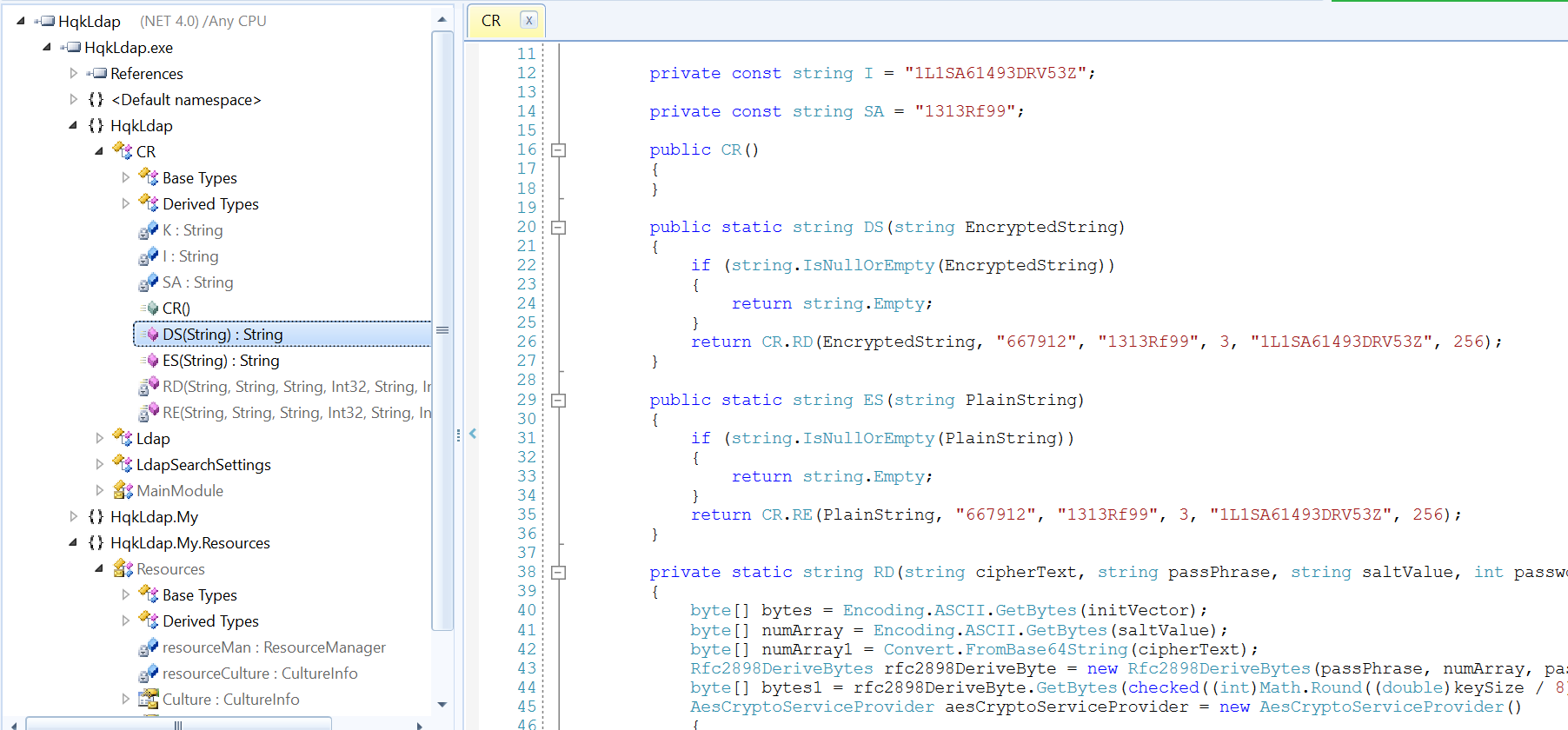 - In the same directory, we have an .exe file as well. After downloading it on a local machine, since it is a compiled file, we have to disassemble it. After doing that, under the LDAP directory, we can see some more encryption and decryption functions. These functions were similar to what we saw in part 1.
