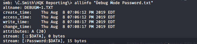 - The .txt file initially looked empty, but in its ADS, we can see some bytes. Downloading those reveals a string, which can be a password.