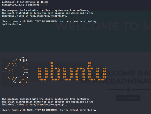 - Applying that to the login page, we got the landing page below with an option to download a backup.