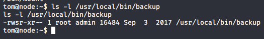 - Looking into Tom’s sudo ownership, it looks like a file backup can be executed with sudo bit set.