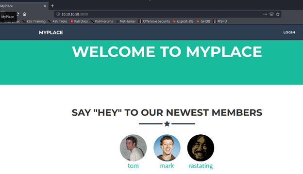 - Based on the above enumeration, we can start to look into port 3000, which shows the webpage below: