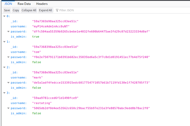 - Traversing that, we got the usernames and passwords (hashes) below: