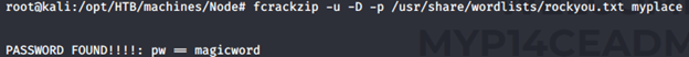 - With the recovered password, we’re unzipping the archive, as shown below: