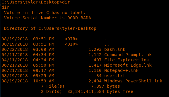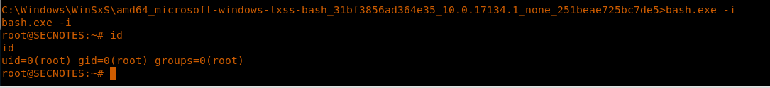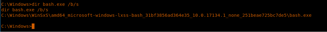 18. This is an indication that WSL is installed on the machine. Simply executing the bash.exe gives us an escalated shell in Ubuntu.