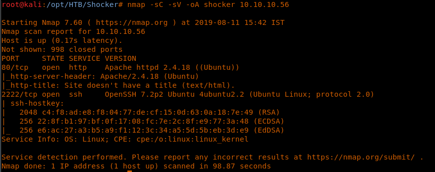 <<nmap -sC -sV -oA Shocker 10.10.10.56>>