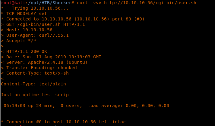 <<curl -vvv http://10.10.10.56/cgi-bin/user.sh>>