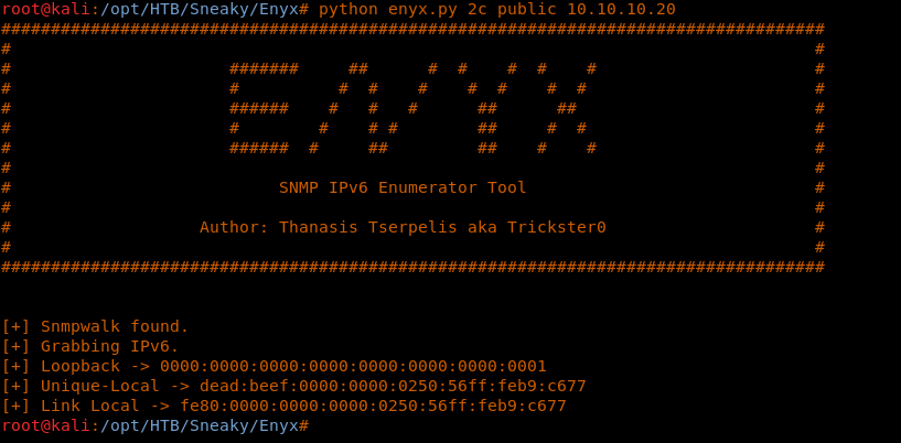 This is a straightforward machine with lot of enumeration involved to grab the IPv6 interfaces, which then requires trivial buffer overflow to grab the root flag and shell.