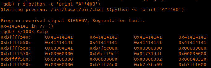 - Now we have the offset, we need to find the EIP location. Let’s do that with random As with GDB, as shown below.
