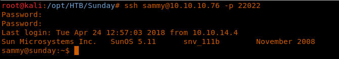 Ssh sunny@10.10.10.76 -p 22022